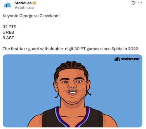 凭借这样的表现,乔治本赛季已经10次砍下30+得分表现,成为爵士队史米切尔之后,首位单赛季至少10次拿下30+得分的后卫。