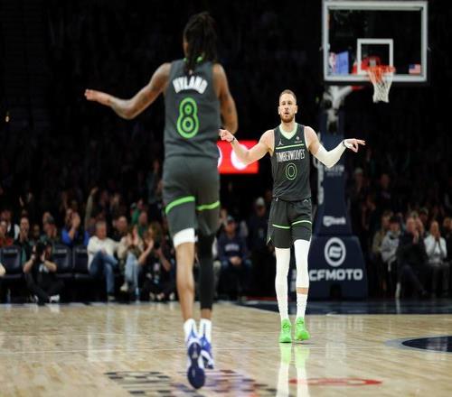 森林狼队,迪文岑佐3分球12中5砍下了19分9板7助3断、里德18中7得到17分11板2助2断、兰德尔11中4得到15分8板4助,末节连续防守建功。麦克丹尼尔斯9中5得到了12分5板1助2断3帽、海兰德8中3得到10分1板、康利4分2助、戈贝尔2分14板3助、克拉克2分1助。