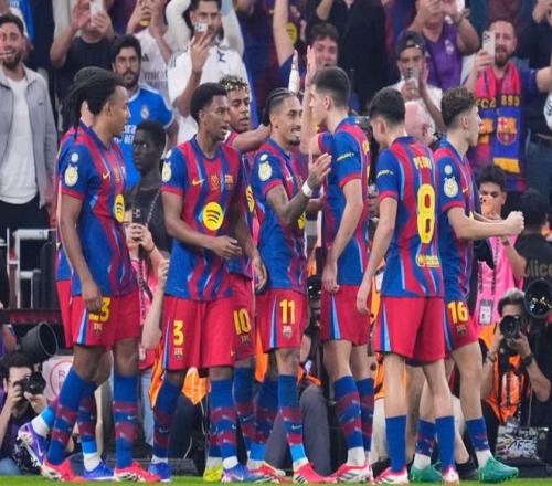 下半场易边再战。第55分钟,维尼修斯内切兜射,被扑出。第64分钟,罗德里戈在禁区内低射远角,门将把球扑住。6分钟后,亚马尔在禁区中路包抄铲射,门将把球扑出。第73分钟,巴萨再次进球。拉菲尼亚横向盘带后起脚射门,皮球被挡了一下折射入网。